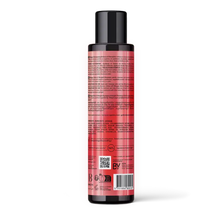 Binggys Shine & Straight Shampoo will tame frizzy, unmanageable and hard-to-dry hair! It will make them disciplined without holding back its flow and softness. Both Shine & Straight Shampoo and Conditioner are enriched with complementary ingredients for an efficient hair care ritual: argan oil will moisturize your hair and scalp and protect your hair from everyday damage, while a plant-derived protein active offers deep micro-penetration for reduced hair surface damage and longlasting strength. A simple – yet effective – hair care ritual that undeniably gorgeous hair within no time !