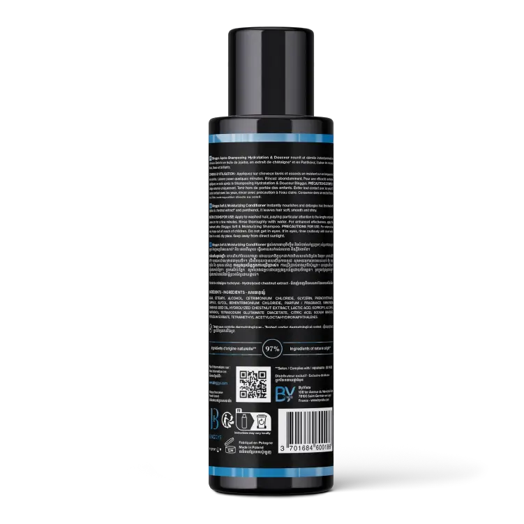 Binggys Soft & Moisturizing Conditioner is the perfect ally to detangle frizzy hair, while leaving it soft, shiny and manageable. It is enriched with Chestnut Extract, a plant-derived active from Italian Organic certified chestnuts, that repairs damage and closes hair cuticles. The Jojoba Oil, which is rich in antioxidants, and full of vitamins: C, B and E, gives moisture to hair follicles and prevents dryness. Applied after shampooing, it instantly nourishes and untangles the hair without weigh them down. The hair fibers will become easy to brush, silky & bright !